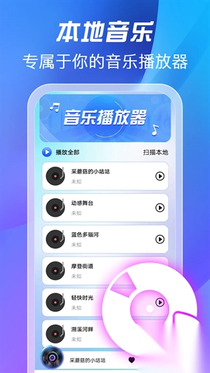 全免歌曲播放器,一款实实在在免费的音乐畅享神器。它整合了海量正版音乐资源,无论何时何地,都能带你尽情遨游音乐天地。而且,该播放器支持导入本地音乐文件,进一步丰富你的音乐收藏。要是碰到喜欢的歌曲,只需轻松一点,就能添加到喜欢列表,便于日后重温。此外,它兼容多种音频格式,保障你的听歌过程顺顺利利。热爱音乐的你,可千万别错过这款宝藏播放器!