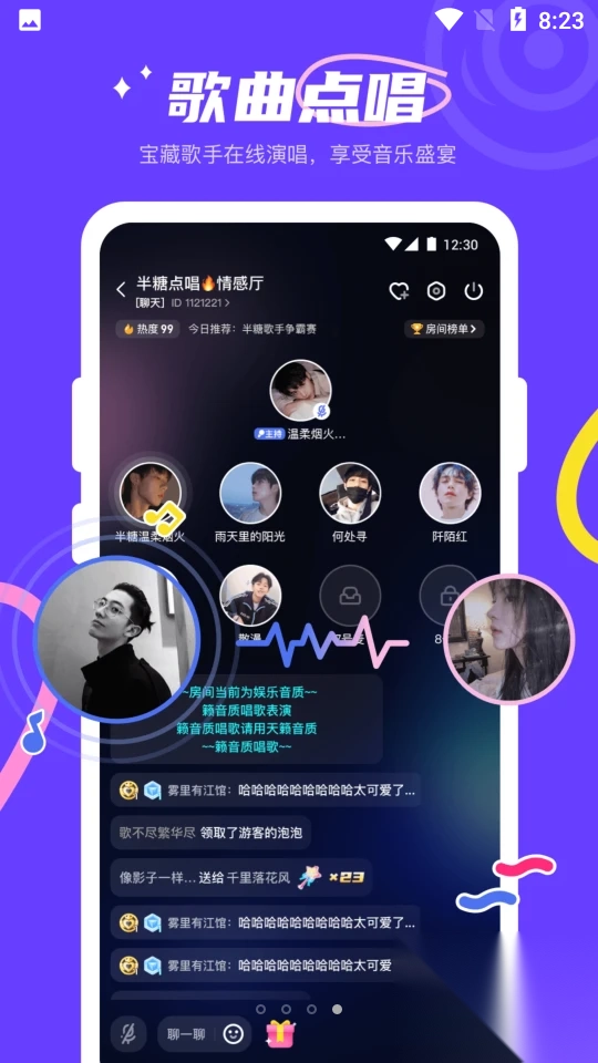 2、在线k歌,邂逅很多的小伙伴们,一起娱乐,进行互动吧;