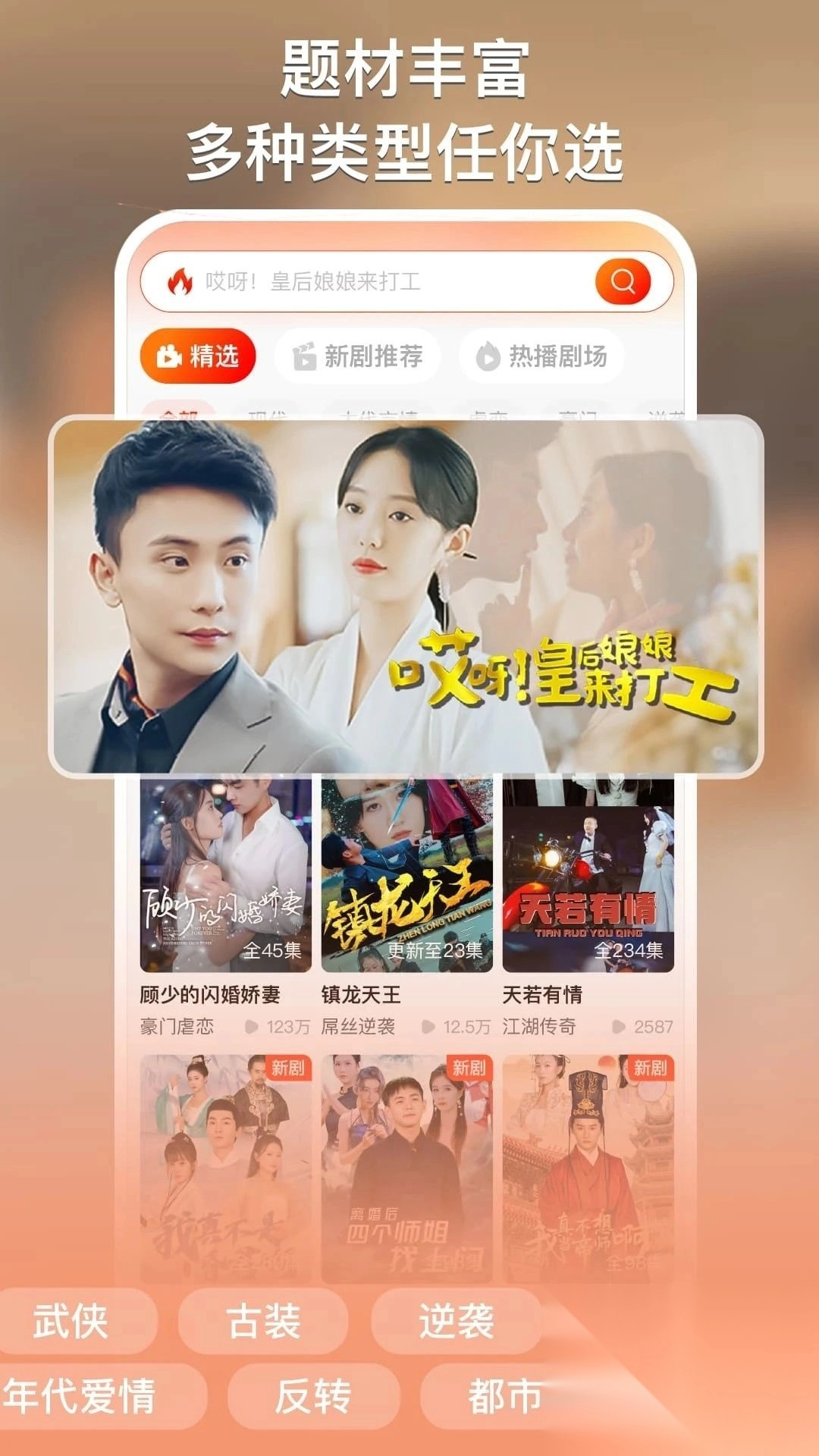 1、短剧题材丰富多样,各类题材应有尽有,大家可直接挑选自己喜欢的进行观看!