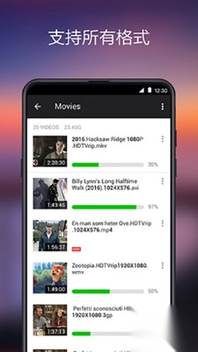 ● 可支持全部视频格式,诸如 MKV、MP4、M4V、AVI、MOV、3GP、FLV、WMV、RMVB、TS 等等。