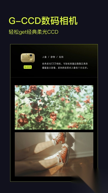 咔皮action是一款支持拍摄DV、CCD、胶片效果的应用。在这里,用户能够按照自身喜好,挑选各式各样的滤镜来进行拍摄。它具备实时预览功能,用户在拍摄时就能直接看到拍摄成果,进而辅助用户对拍摄角度、光线等参数加以调整,助力用户拍出满意的照片,尽情享受复古风格的画面质感与氛围感。