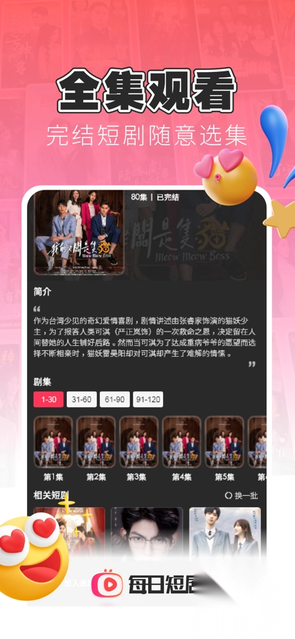 1、为你呈现丰富多样的短剧题材,涵盖都市、喜剧、爱情、悬疑、校园等,全方位满足你的观看喜好,随心所欲,想看啥就看啥,拥有绝对自由的选择空间。