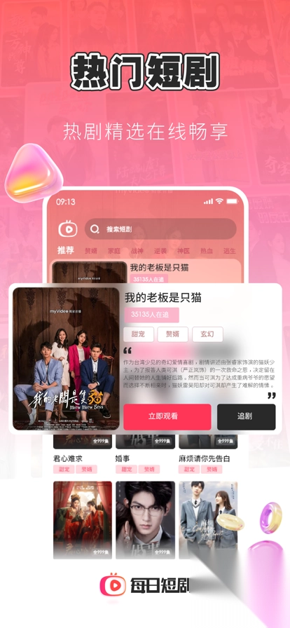 3、海量热门短剧,让你一次看过瘾!时刻紧跟潮流步伐,绝不遗漏任何一部热门佳作。不仅如此,系统还能依据你的喜好,贴心为你推送相关短剧,超有人性化!
