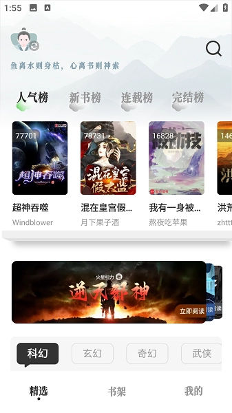 1. 书库设有玄幻、都市等25种分类标签,每一部作品均标注更新状态与热度指数。热门作品专区会展示实时阅读人数以及读者评分。