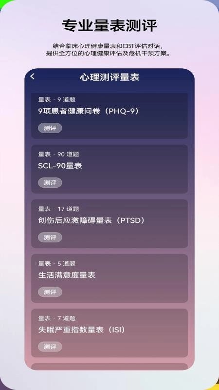 能够针对用户的心理健康展开专业测评,实时检测用户的心理问题,助力用户深度探索。