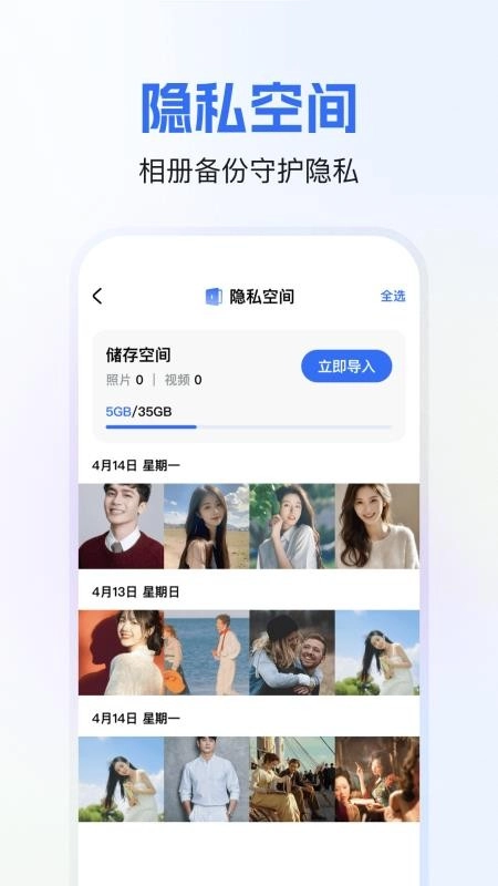 打造隐私空间,此后便能在该隐私空间内导入各类需要隐藏的照片、视频以及文件等。