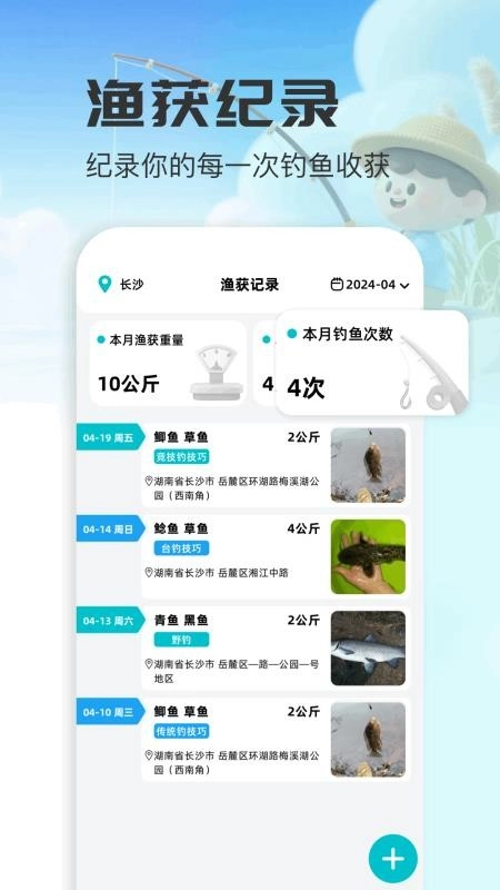 用户也可以轻松记录自己的渔获,便捷记录自己的钓鱼收获,就可轻松记录渔获。