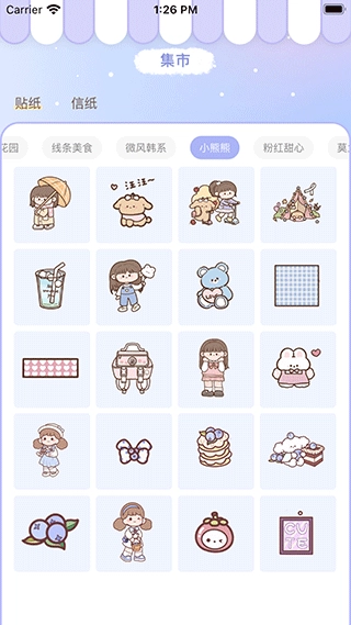 2、精美素材库:持续更新海量的贴纸、胶带、咕卡、纸胶带等原创资源。