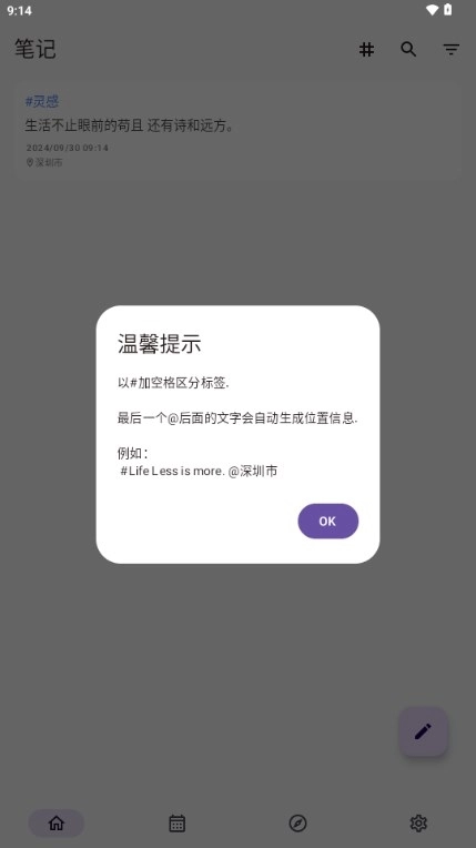 2、碎碎记软件会以列表形式展示您的注释,同时将每日注释以时间轴的形式呈现出来。