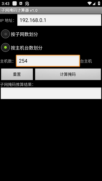 1、此软件可依据所需分割的子网数量,自动生成子网掩码,操作简单便捷。