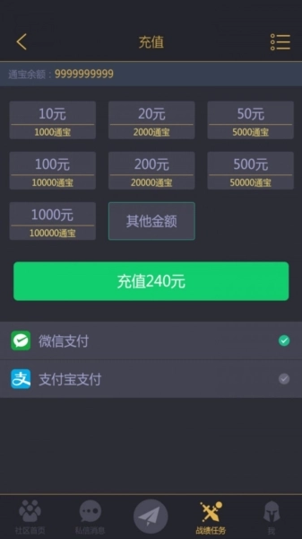 4、充值系统:可以在手机上向游戏充值,充值货币可以在平台上使用;