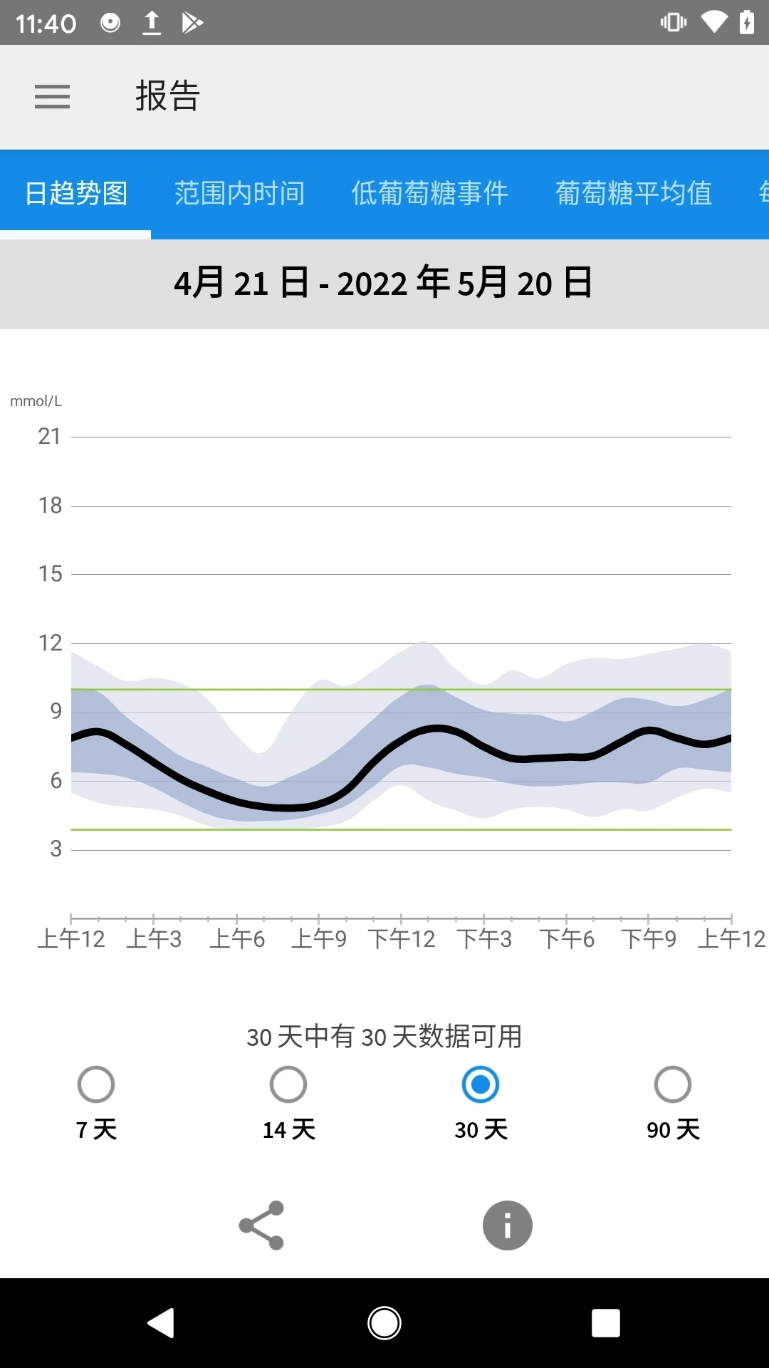 无须将数据导入电脑端软件,更方便查看近90天控糖水平。