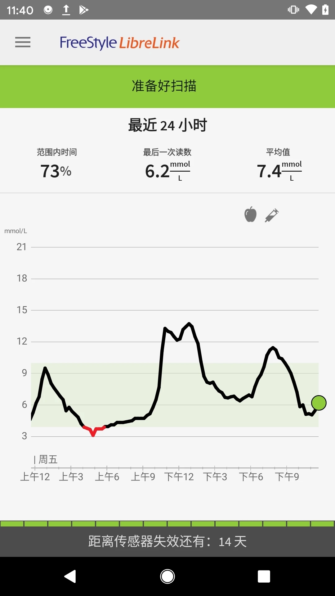葡萄糖报警:如果您使用应用启动新的辅理善瞬感2系统传感器,则可以在手机上设置低葡萄糖和高葡萄糖报警。