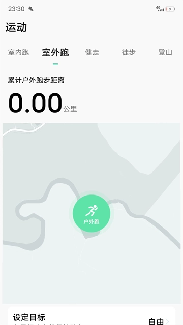 2、点击运动,可以帮助用户记录室内跑,室外跑,健走,登山等各种运动的数据。