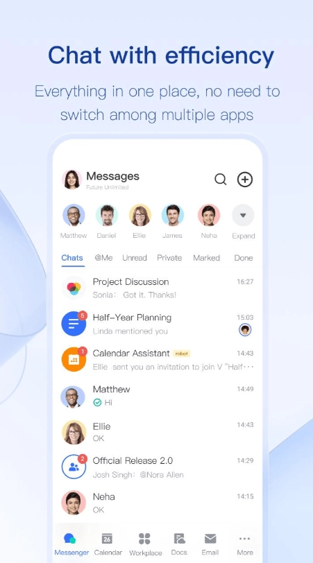 通过 Lark 强大的 Messenger 与您的团队进行私下或群组交流