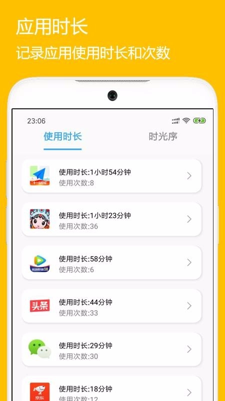 1. 可实时记录手机使用时长,并按天、周、月进行分类归档,便于查看。