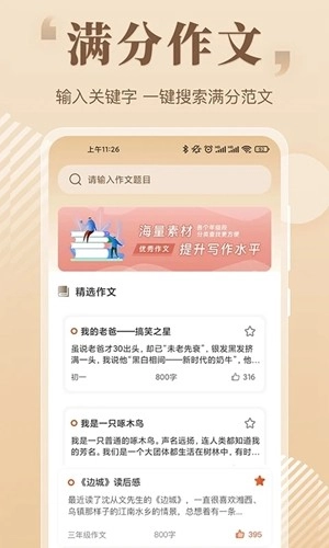 -作文搜索功能,只需要输入作文题目,就可以阅读浏览所有相关作文。