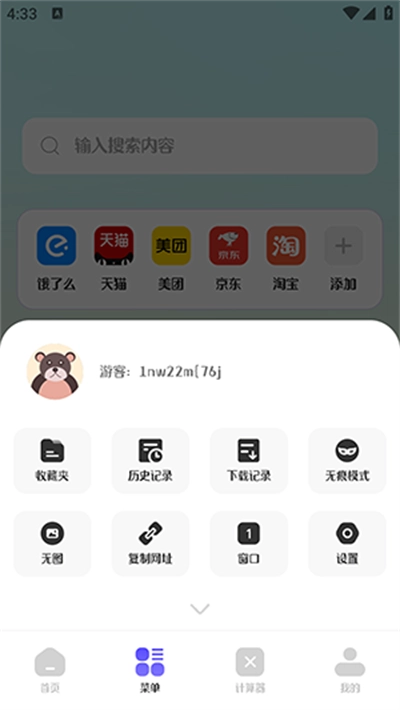 1. 首页设计简约,默认呈现空白界面,支持添加个人常用网址。