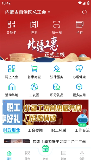“北疆工惠”是内蒙古自治区总工会推出的服务类软件,它还有个称呼叫“内蒙古总工会”。该软件主要服务于全区及各地方工会会员,目前具备网上申请入会、网上申请转会、维权服务、心理咨询、法律服务、在线问答、活动阵地、鹊桥相会等功能,目的在于让职工更便捷地享受工会服务,提高职工福利水平,增强职工的凝聚力与归属感。