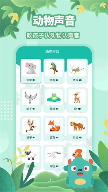 3、声音:你可以在此页面里给孩子听动物叫声;