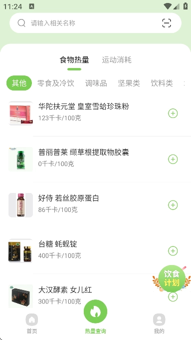 3、软件还提供食物热量查询功能,用户可根据所食用的食物进行查询。