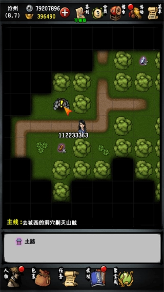 考验一:寻找八卦门失窃的刀法秘籍和拳法秘籍,之后向董百川询问,了解到盗走秘籍的是红衣大盗与黑衣大盗,这两人习惯藏在山洞中。你需要分别前往沧州右上角的洞穴(坐标22,2)、汉阳一字红洞穴(坐标34,22),击败这两个大盗,具体阵容安排如下: