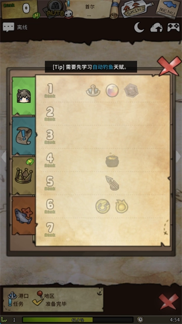 地图旁边的Auto功能,需要你在天赋系统中升级自动导航技能才能解锁,这是后期获取珍珠天赋的必要前置条件。而左下角的Auto按钮,则是在自动钓鱼技能升满之后才会解锁的。
