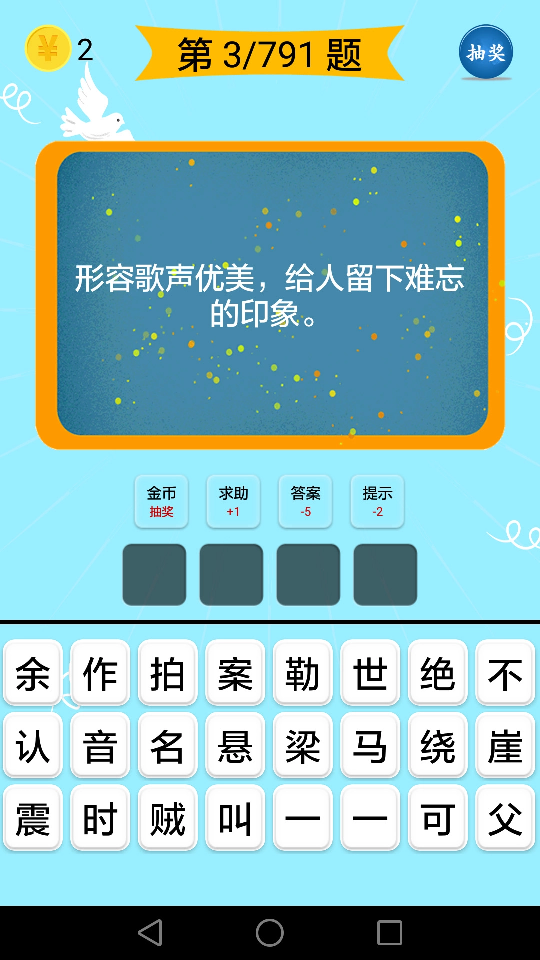 用户猜不出成语可以点击提示,在提示的帮助下答对更多的成语。