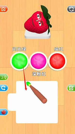 1.关键元素丰富多样,每一关都会出现新的水果蔬菜,等待玩家为它们填色。