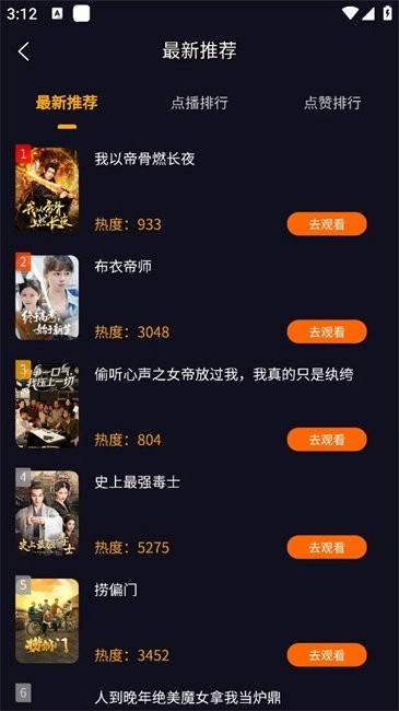 1、设有短剧排行榜,用户可直接在此挑选并播放短剧。
