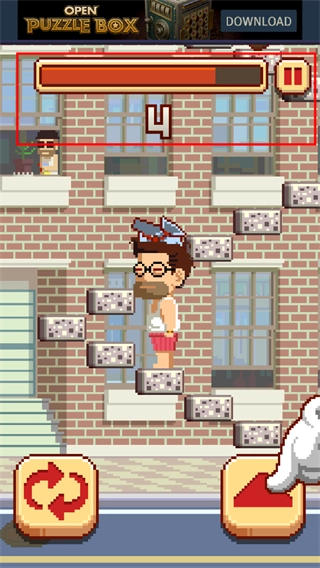 5、游戏玩法尽管简单,但随着攀爬高度的增加,游戏速度会越来越快,留给玩家的反应时间也越来越少,极具挑战性,快来感受一番吧!