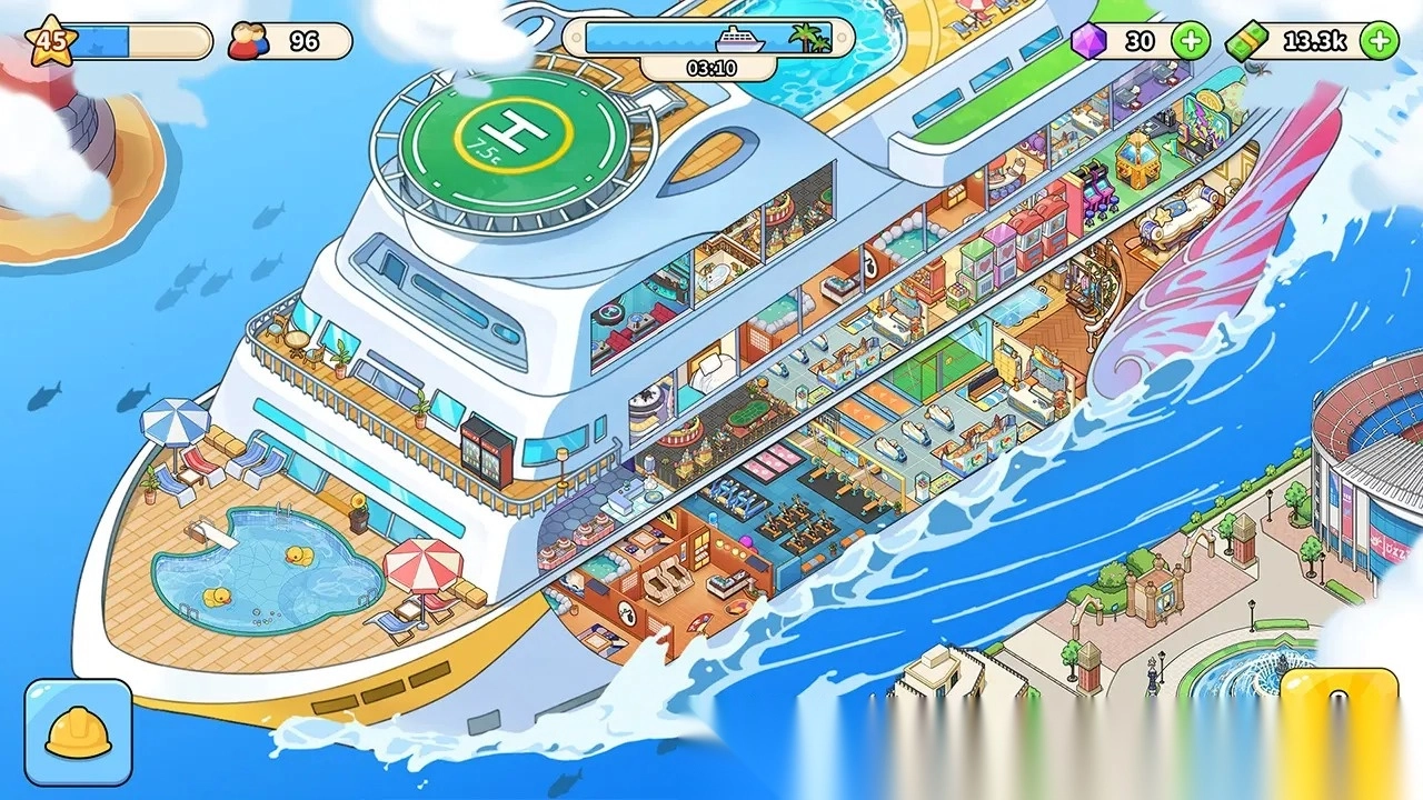 2. 玩家能够依据个人喜好建造各类设施、装扮游轮,从而获得自由度极高的游戏体验。