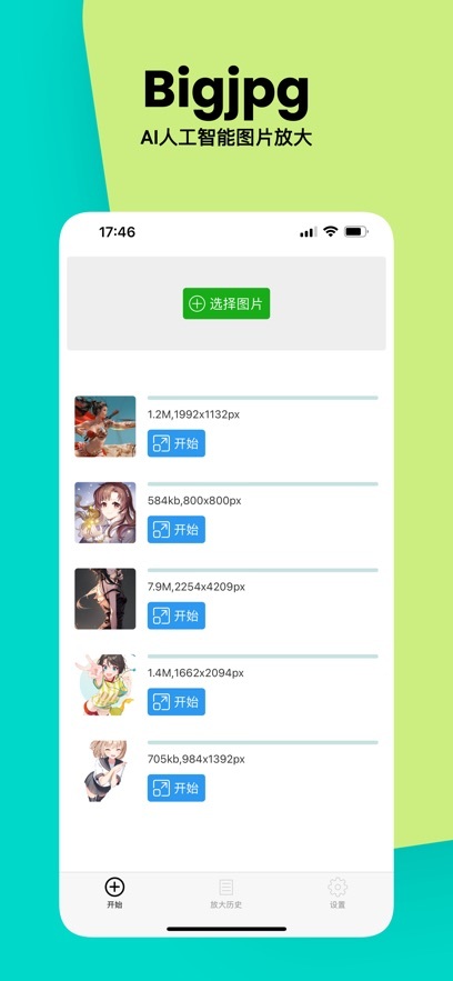 1、这款应用操作起来十分简便,您进入首页就能看到“选择图片”这个选项