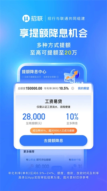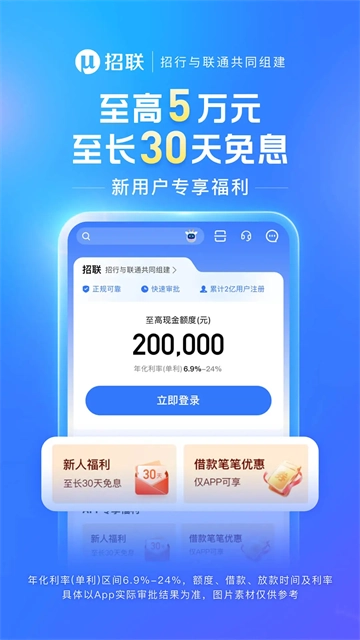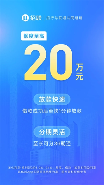招联金融是招商银行与中国联通联合打造的金融理财应用,它既能为个人用户带来银行级别的安全、专业、智能且便捷的现金借贷、分期消费以及免息购物服务,也能为企业提供丰富专业的金融消费相关服务,同时还能全方位提供多种借款服务。借助招联金融,用户可利用招联信用额度享受先消费后还款的便利,还款期数最高可达24期,还能参与优惠分期购物活动,无需再为资金周转问题发愁。此外,招联金融还面向在校学生推出无套路的信用贷款与分期消费服务,本科、硕士、博士学历的学生均可申请,该服务利率极低,支持随借随还,并且不收取任何手续费。