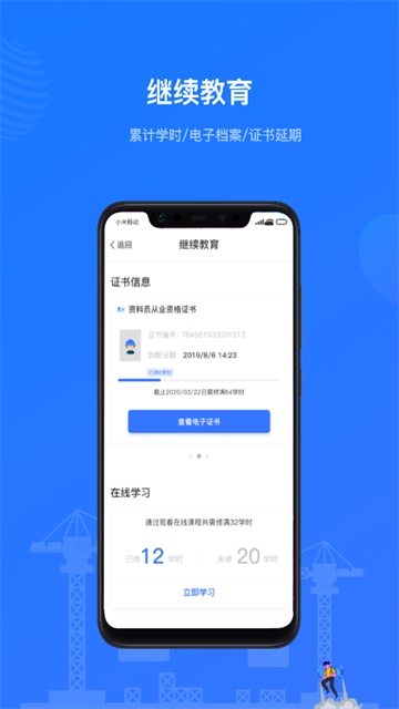 2、进入学习主页面后,找到可查看的继续教育证书,从中选择已报名的证书开展学习