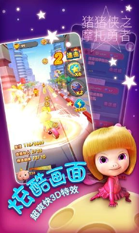 2. 在游戏里,玩家得操控猪猪侠驾驶摩托车,跨越各类障碍,收集金币,达成游戏任务。