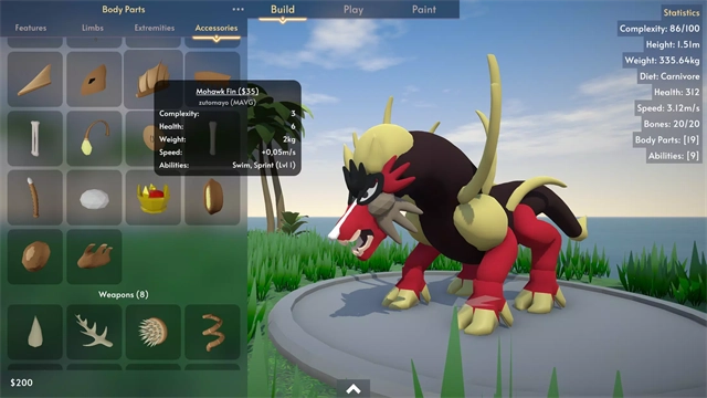 2、高度自由的3D创造体验:游戏采用高度自由的操作模式,玩家能够从生物的脊椎结构到细微纹理进行全方位定制,直观呈现生物的形态与动作,使最终成果更具视觉冲击力。