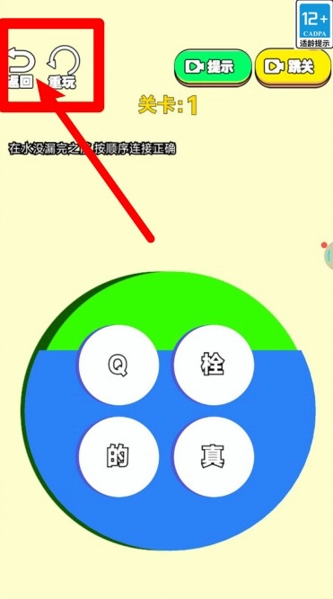 2.点击左上角的返回与重玩按钮,可以快速回到上一步或重新尝试,确保顺利完成所有文字连接题目。