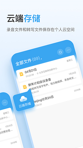 2、云空间存储: 为用户提供了充足的个人云空间,随时随地查看和管理录音文件。