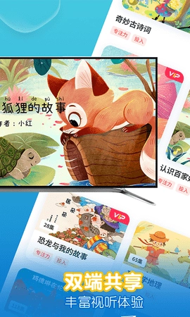 这款应用有不少贴心的产品特色:首先是能依据宝宝的年龄段精准推荐内容,为他们匹配适宜的绘本故事资源;其次支持电视端和手机端共享使用,让亲子家庭不管何时何地都能获取想听的内容;此外,它的资源库十分丰富,不仅涵盖大量儿歌和故事,还有国学启蒙与快乐英语的学习内容;同时,应用也重视孩子的认知启蒙与成长教育,提供了安全教育、品德培养等方面的内容,方便亲子家庭随时随地开展学习。