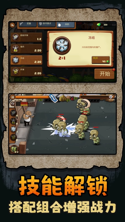 2、再从第一关开始挑战,抵御尸潮。