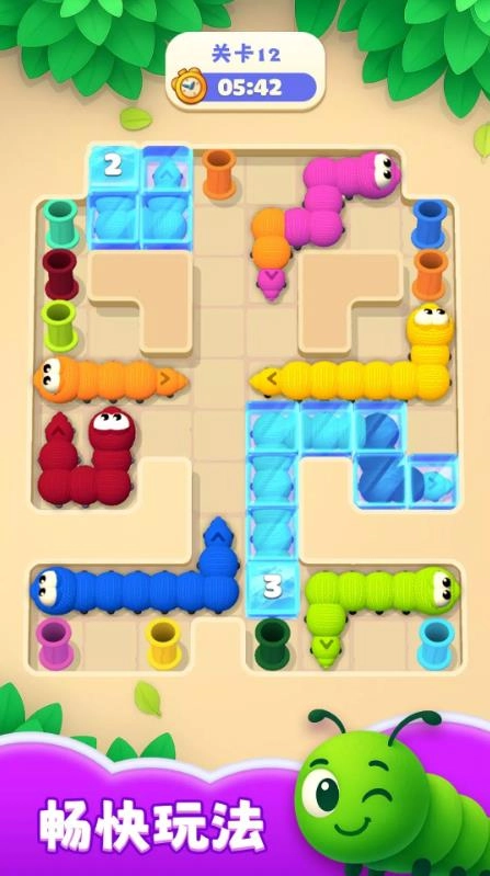 2、蠕虫要顺利抵达终点,就得灵活运用路线规划,避开复杂的障碍和狭窄的空间。