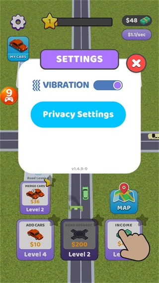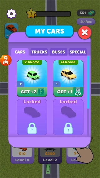 4、点击ADDCARS增加汽车数量,还能升级收入提升收益。