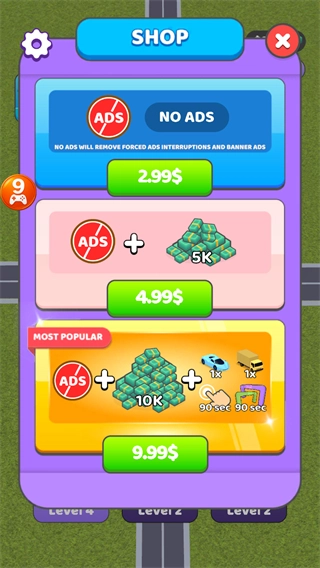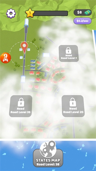 3、道路上车辆增多,积累资金后可升级道路解锁更多建筑。