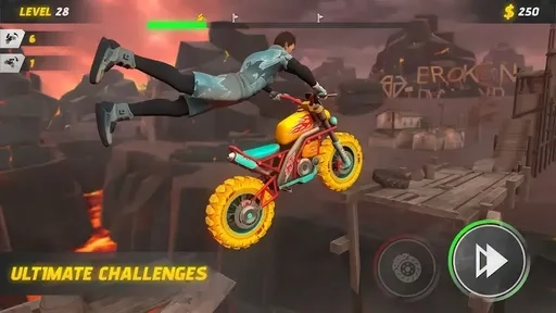 玩家可以掌握多样的摩托车特技,借助各类道具助力轻松驾驶闯关,超越前方对手,体验别样趣味的特技挑战,更顺利地完成冒险。